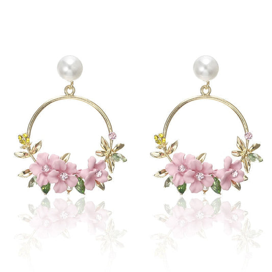 SAVE 75%Flower and Pearl Earrings in Gold